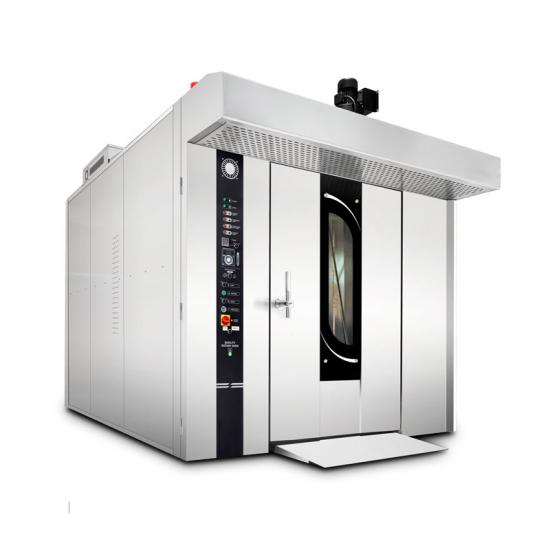 "فرن الرف الدوار"يشير إلى نوع من الفرن شائع الاستخدام في صناعة الخبز يُعرف أيضًا باسم فرن الرف الدوار يتكون الفرن من رف دائري دوري أو عربة يحمل صواني الخبز أو الرفوف يدور الحامل داخل غرفة الفرن ، مما يسمح بتوزيع حرارة ونتائج ثابتة